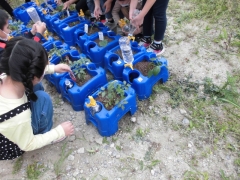 ★2年生が生活科の時間に、自分の選んだ野菜の苗を植えています。きゅうり、ミニトマト、オクラ、ピーマン・・上手に育てて、たくさん実がなるといいですね。