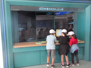 はじめての社会見学に行ってきました。午前の四日市市総合体育館では、施設の工夫や込められた願いを学習してきました。午後からは四日市港ポートビルで、港のはたらきや四日市港の特徴を学習しました。映像を見たり、景色を見ながら説明を聞いたりする場面では、メモを取りながら真剣な表情で学習に取り組みました。自由時間には、模型を見たりクイズをしたり、楽しく体験しながら学びました。これから、学んだことをわかりやすくまとめる学習をしていきます。