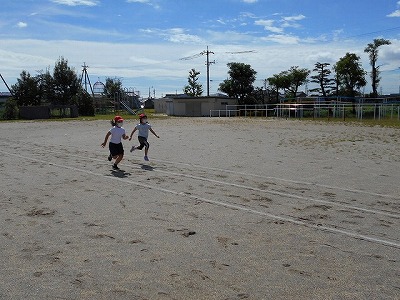 3年生は50m走をしました。10月の運動会に向けてがんばりましょう。