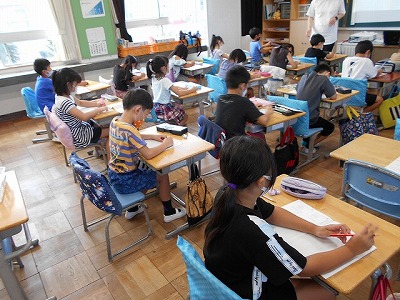 2年生の国語、漢字の学習です。とても良い姿勢で漢字を書いています。