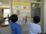 また,夏休みの間に先生に送ったハガキをみんなで見ながら