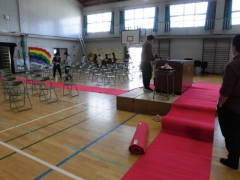 6年生と4年生以下の児童は給食後に下校し、5年生が卒業式準備を行いました。