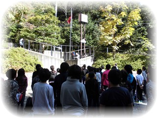 校旗を掲揚し、校歌を歌った後、自然の家の方々を前に、この2日間の誓いを述べました。