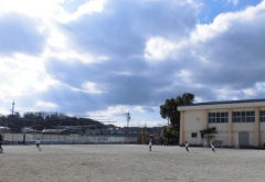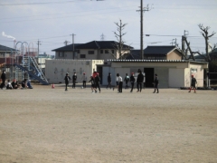 風が強い日になりました。体育の時間のはじめにはどの学年も5分間走に取り組んでいます。