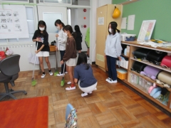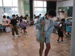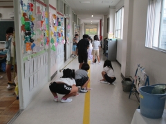 運動会後、初の登校です。今日は、朝の「みえっ子タイム」の時間に、気持ちよく授業が始められるように、全校で校舎内の清掃に取り組みました。普段は教室で使っている椅子を運動場で使ったので、校舎内は砂がたくさん落ちていましたが、すっかりきれいになりました。ありがとう。