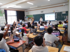 今日の2時間目に行った4年3組の理科「電気のはたらき」の授業を全教員が参観しました。
