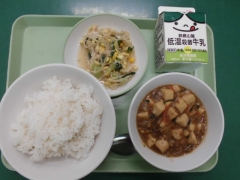 ★今日の給食はマーボー豆腐とナムルでした。マーボー豆腐のお豆腐は冷凍だそうですが、プルプルで喉ごしもよく、美味しかったです。
