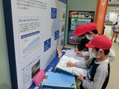 ★海ごみクイズでは、ビニール袋などのプラスチックごみが100年後まで残ることや、その捨てたごみがマイクロプラスチック(5㎜以下のプラスチック)になり、魚が食べたものが人間の体に入るという話を聞いて、子どもたちは衝撃を受けていました。