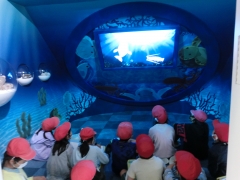 まずはじめに訪れたのは、三重県環境学習情報センターです。各クラスに分かれ、展示ホールの見学、海ごみクイズの話、水質チェックを行いました。