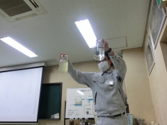 次は北部浄化センターへ行きました。今日はあいにくの雨だったので、汚水が浄化される様子は直接見れませんでしたが、センター内で、いろいろな実験をしたり、微生物を見せてもらったりしました。