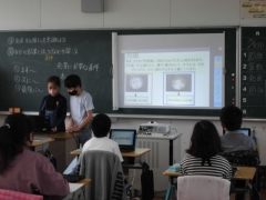 ★5年生が理科の実験の発表会を行っていました。自分たちで課題を見つけ、その結果と考察をタブレットにまとめたものを発表していました。「植物の生長に空気は必要か?」写真も考察も発表もわかりやすく上手にできていました。