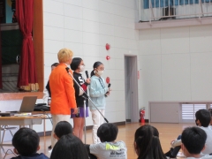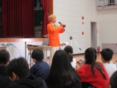 ★講演が終わった後は、6年生代表児童によるオレンジ田中さんに向けてのお礼の言葉を述べました。「いじめは絶対にしてはいけないこと」「困ったとき、悩んだときは誰かに話していきたい」「どんなことでもいいのいで夢をもつことの大切さを知った」など、代表児童の素直に話す姿がとても素晴らしいと感じました。
