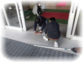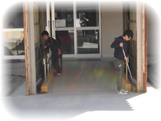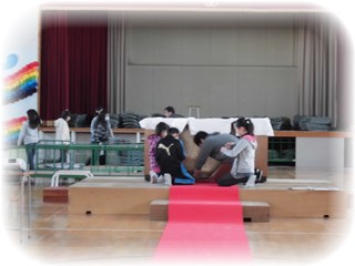校舎内・外の掃除をしたり体育館の設営をしたりして、ここでも在校生の代表として頑張りました。