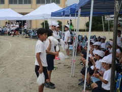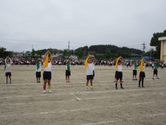 運動会は、時折小雨に降られることがありましたが、プログラムに支障をきたすことなく、最後までスムーズに終えることができました。6年生を中心とする子どもたちの係活動のおかげでもあります。
