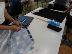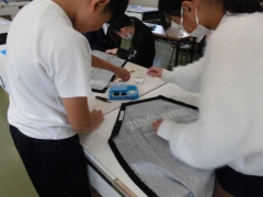 ★5年生はエプロンを制作中です。進度に差がありますが、ペアで教え合う姿は大変ほほえましかったです。コロナ禍では体験できなかったので、強く思いました。出来上がりが楽しみです。