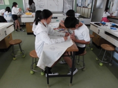 ★保健室や視聴覚室ですべてのクラスの視力検査を行いました。後日結果を届けます。少しタブレットの影響は出ているかな?