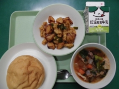 ★今日の給食はいかと野菜のレモン風味揚げとミネストローネでした。6年生のエピソードの中に「いかのレモン風味あげの日は、苦手な授業も楽しく受けられたので、私にとっては魔法の食べものです」と書いてあったそうです。給食の力は偉大です。
