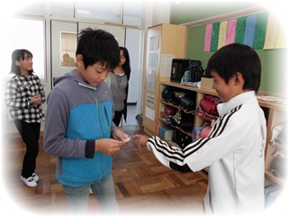 発音練習をした後、自分の持っているカードを使い友達とカードのやりとりをするというものです。