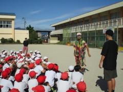 今日は、世界的に有名なダンサーであるケントモリさん、そして、これまでダンス指導でお世話になってきたナミJさんに来校していただき、低・中・高学年の表現運動について参観していただき、アドバイスをいただきました。「ひとつひとつの表現を大切にすること」「ダンスは世界を変えられる」「踊りは世界中のみんながつながれる」などのメッセージをいただきながら、各演技に対してアドバイスをいただきました。ますます運動会が楽しみになってきました。ケントモリさん、ナミJさん、ありがとうございました。