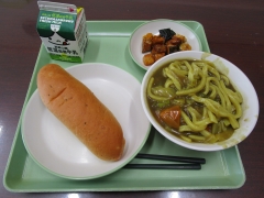今日の給食は、「小型玄米パン・牛乳・カレーうどん・フライドかぼちゃ」です。150年ほど前の明治時代にカレーライスが日本に伝わってきましたが、カレーライスの人気が高まる中で、だしとカレーを合わせてカレーうどんを作ったのが始まりとされているそうです。歴史を感じながら美味しくいただきました。ごちそうさまでした。