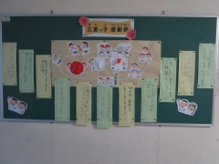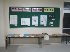 現在、児童玄関を入った掲示板には、運動会に向けてたんぽぽ学級で作成した目標が掲示されています。そして、三泗小中社会科作品展・科学展に学校代表として出展した作品が展示・掲示されています。掲示板には、子どもたちのがんばっている姿がたくさん表現されています。
