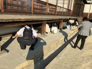 最後の見学地 二条城へ着きました。うぐいす張りの廊下を歩きながら、昔を偲んでいました。