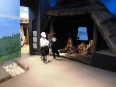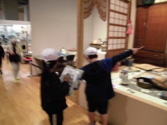 ★各クラスを赤白チームに分けて、二つのグループに分かれて見学しました。3階の常設展では、古代から江戸時代までの暮らしの移り変わりを学びました。