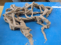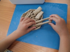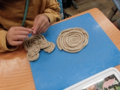 ★4年1組の担任は社会、4年2組の担任は体育、4年3組の担任は理科(書写)を教えています。★1年生は粘土で「ひもひもを作って・・」いろいろな作品が出来上がりました。