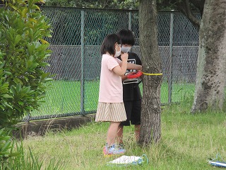 算数科の学習で、まきじゃくの使い方を学習しました。はかるものを決め、見当をつけてからはかることで、長さを体感します。運動場に出て、いろいろなものの長さを知ることができました。