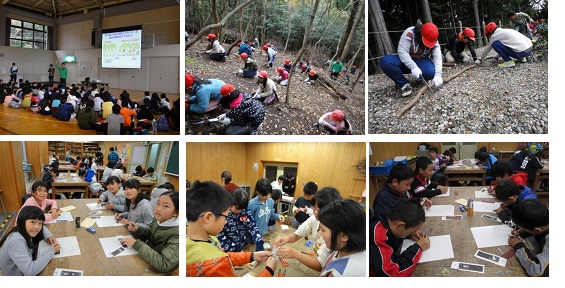 まず,体育館に全員集まり話を聞きました。ここでは,木を伐採して,私たちの生活を豊かにしている一方で,環境を破壊していることを学び,私たちの環境を守っていくことの大切さを学びました。