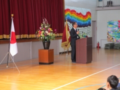 着任式では、本校に着任した3名の職員を紹介し、代表の職員からあいさつをしました。