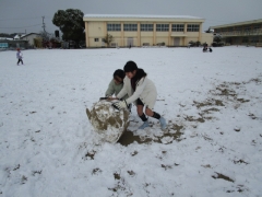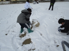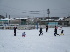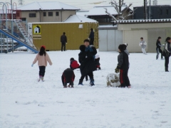 今日は、朝、ふわふわの雪が積もっていました。登校の見守りをありがとうございました。わくわくしながら歩いている子、寒そうに歩いている子、雪玉を持ちながら歩いていく子、さまざまな姿を見せていました。雪がやんだ1限目には、たくさんのクラスが運動場で雪遊びをしていました。