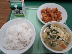 今日に給食は、「米飯・牛乳・チキンチキンごぼう・かきたま汁」です。チキンチキンごぼうに入っている食物繊維が豊富な「ごぼう」は、おなかの調子を整え、よくかむことで集中力もあがります。シャキシャキとした歯ごたえを楽しみながら美味しくいただきました。ごちそうさまでした。