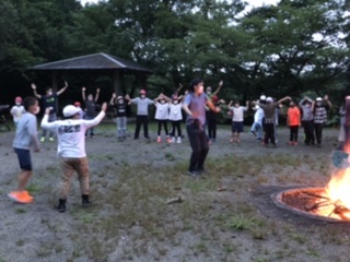 キャンプファイヤーでは猛獣狩りゲームやダンスを踊って盛り上がりました。今年も三重小の5年生はみんなで盛り上がろうという雰囲気があり、心地よい時間を過ごすことができました。