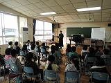 この日は鈴鹿市出身で、現在東京で音楽活動をされている方に来ていただき、リコーダーの楽しい授業をしていただきました。私たちがいつも使っているリコーダー以外の種類のものもいくつか紹介していただきました。リコーダーの奥深さに驚いている友達がたくさん見られました。