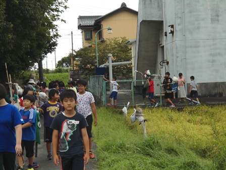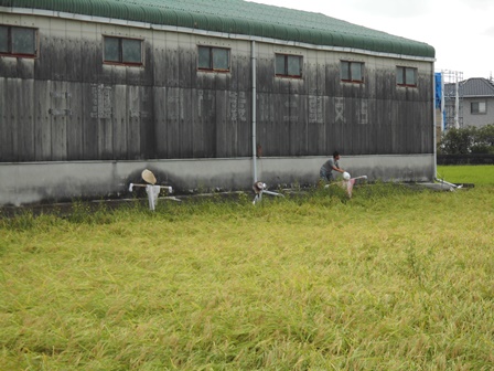 猛暑の中,田んぼで稲の成長を見守ってくれた「かかし」や「おどし」を撤去しました。稲刈りは,再来週に予定されていますが,大型台風の接近で「かかし」や「おどし」にも被害が出ないようにと,急きょ撤去に踏み切りました。