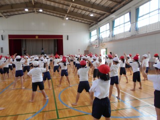 今日は体育館いっぱいに広がって、振りを覚えました!