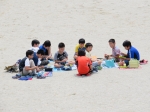 この日は天気も良く,外で食べる子もいました。いつもと違う場所で