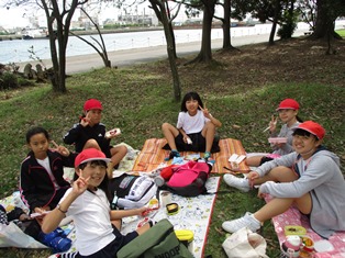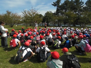 今日は,遠足。1日延期になりましたけど,とってもいい日になりました。今年は,高学年になったので,遠足の距離も少し長くなり,往復約14kmとなりました。目的地は,「霞★ゆめくじら公園」です。少し遠くなった分,子どもたちからの「あと何km?」や「あと何分で着く?」「今何時?」の質問に何度も答えながら歩きました。