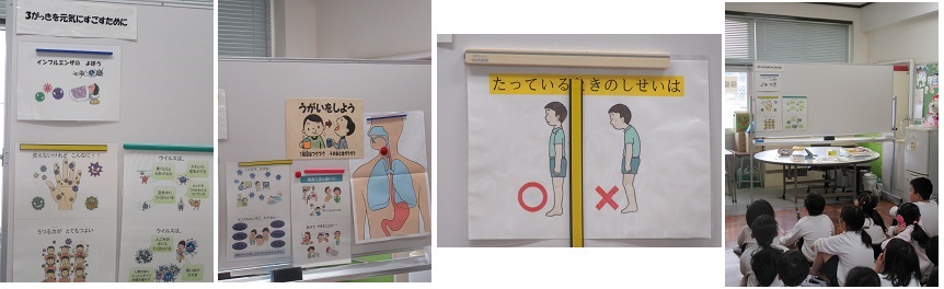 3学期の発育測定をした後,「3学期を元気に過ごすために」保健指導を養護教諭にしてもらいました。特にこの時期インフルエンザが猛威をふるっています。その予防をするため,手洗い,うがいをしっかりしておくことを教えてもらいました。