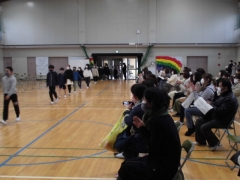 ★卒業式同様、複数で大声での呼びかけができないので、呼びかけは一人ずつ前に出てマイクの前で話しました。