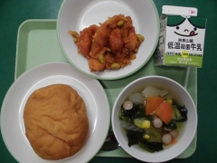 ★今日の給食は鶏肉のケチャップがらめと白菜スープでした。今年度最後の給食はみんなの大好きな献立でした。今年もおいしい給食を毎日作ってくださった調理員のみなさんに感謝して・・ごちそうさまでした!