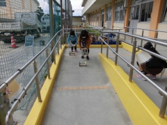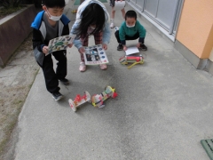 ★1年生が図工の時間に作った作品に風を送りながら動かしていました。「強い風を送るといっぱい進むよ」子どもたちは様々な体験をして学んでいきます。今日家に持ち帰るそうです。