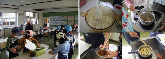 ご飯は,JAさんで借りた田んぼで育てたお米です。朝から係りの子どもたちが家庭科室でお米を研ぎ吸水させていました。みそ汁は,煮干しからだしを取り,野菜たっぷりのみそ汁を作りました。あまりのおいしさにあっという間に完食していました。
