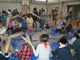 当初,”縄をなう”ということは,子どもたちにとっては至難の業かなとも思われましたが,中には本職さんも顔負けではないのかと思われるような立派なしめ縄を作り上げる子もいて,子どもたちの器用さ(?)には,驚かされました。