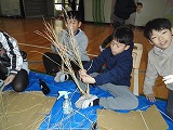 講師には,伊賀市の神社と校区の江田神社から二人の宮司さんをお招きして,子どもたちにしめ縄つくりを指導していただきました。