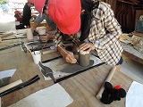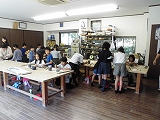 三重地区でも陶芸を営んでいらっしゃる「酔月陶苑」さんの仕事場を訪問し、半日陶芸体験をさせていただきました。私たちは湯呑作りにチャレンジ!初めはきちんとできるかな?と不安に思っている人もいましたが、最終的には全員がすばらしい形に作りあげることができました。焼き上がりにしばらくの日にちがいるそうですが、とても待ち遠しいです。体験の終わりには、酔月陶苑の方から陶芸の実演を見せていただきました。