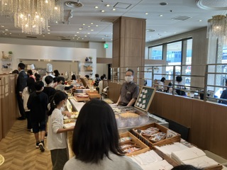 13時に新阪急ホテルに集合し、ブールヴァールでバイキングランチを食べました。たくさんの種類のおかずやデザートを前に子どもたちの瞳が輝いていました。