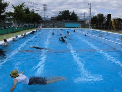6年生が2,3,4時間目に着衣水泳を行いました。今年度もスイミングスクールのコーチにお世話になりました。