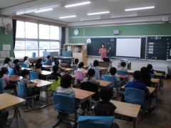 ★3年生が今年から四日市のすべての学校に導入されたドリルパークを使って、漢字の練習をしていました。点、はねまでしっかり機械が読み取ってくれます。子どもたちは「合格するとポイントが増えていくので楽しい」と話していました。